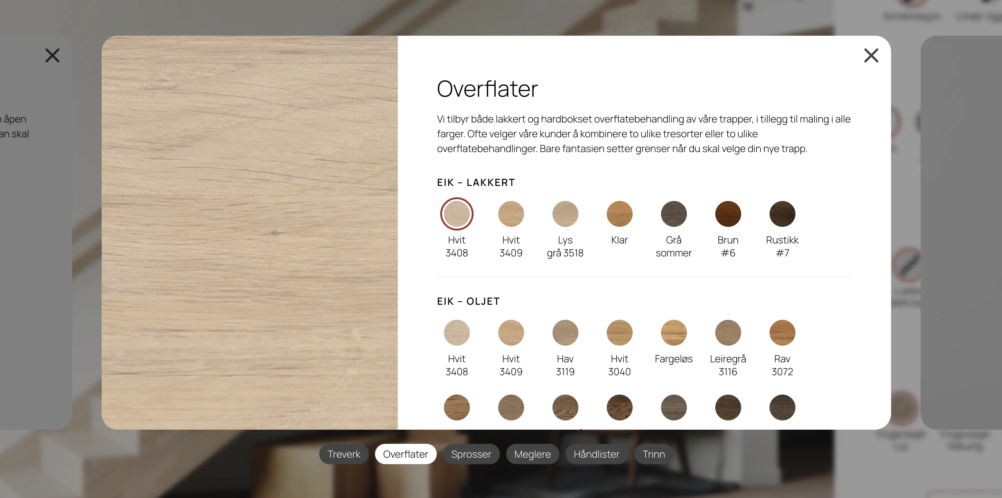 - Tilpass trappen din med de overflatene og tilvalgene du ønsker sa. Bruk vår designutforsker, gjerne sammen med en av våre rådgivere, så kan du få en helt presis pris på din trapp, alt inkludert.
